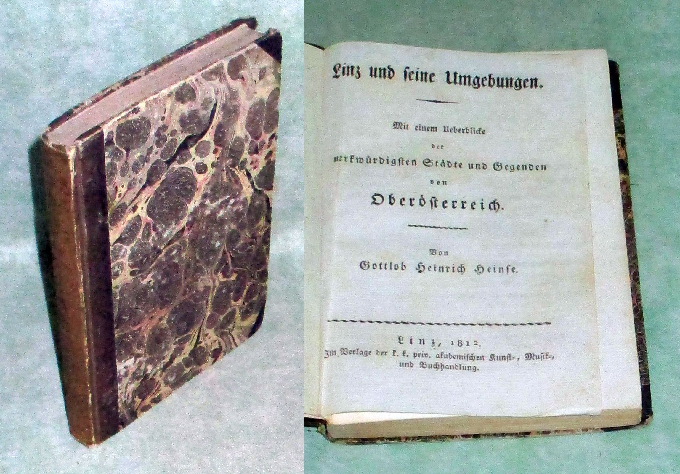 Oberösterreich – Orts- und Landeskunde Heinse, Gottlob Heinrich: Linz und seine Umgebungen. Mit einem Überblicke der merkwürdigsten Städte und Gegenden von Oberösterreich. 1812. VIII, 205 Seiten. Halbleinen der Zeit mit goldgepr. Rücken. Einband leicht berieben, insgesamt ein sehr gutes Ex.