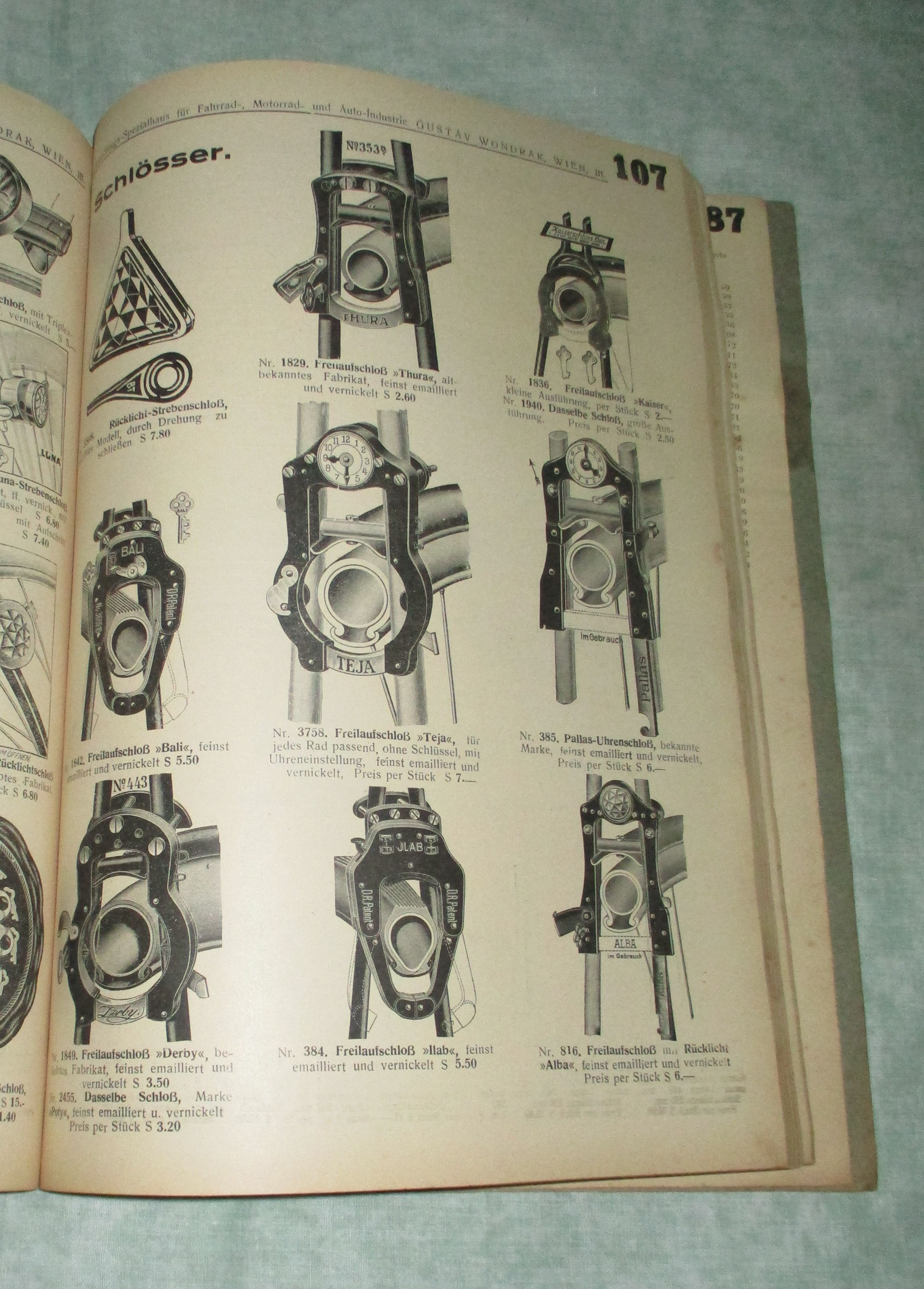 Firmengeschichte + Firmenkataloge Gustav Wondrak – Großhandlungs Spezial-Haus für Fahrrad- Motorrad- und Auto- Ersatz- und Zubehörteile. Wien III., Hauptstrasse 144. Hauptkatalog. Preisliste Nr. 380, 1933/34. 25 x 34 cm ! 188 Seiten, durchgehend illustriert. kart. Einband leicht fleckig, Bindung fest, innen sauber. Originalkatalog!