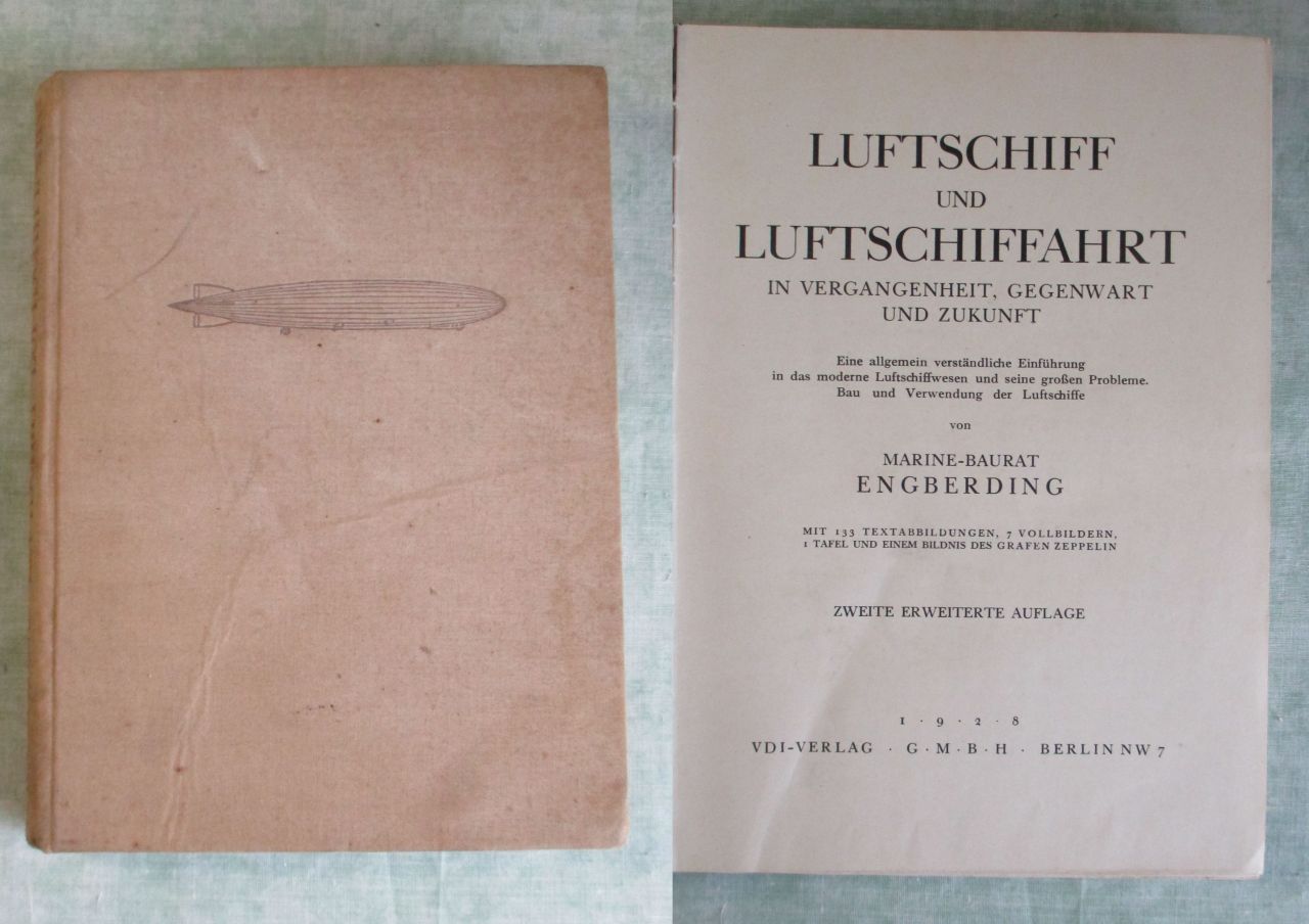 Luft- + Raumfahrt Engberding, Dietrich: Luftschiff und Luftschifffahrt in Vergangenheit, Gegenwart und Zukunft. Eine allgemein verständliche Einührung. in d. moderne Luftschiffwesen u. seine grossen Probleme ; Bau und Verwendg der Luftschiffe. 2. erw. Aufl. Berlin, VDI-Verlag, 1928. 8. XXIV, 303 Seiten. Mit 133 Textabb., 7 Vollbildern, 1 Taf. u. 1 [Titel-]Bildnis d. Grafen Zeppelin. Originalleinen. Einband fleckig mit starken Gebrauchsspuren. Im Gegensatz dazu innen sauber ohne Anstreichungen.
