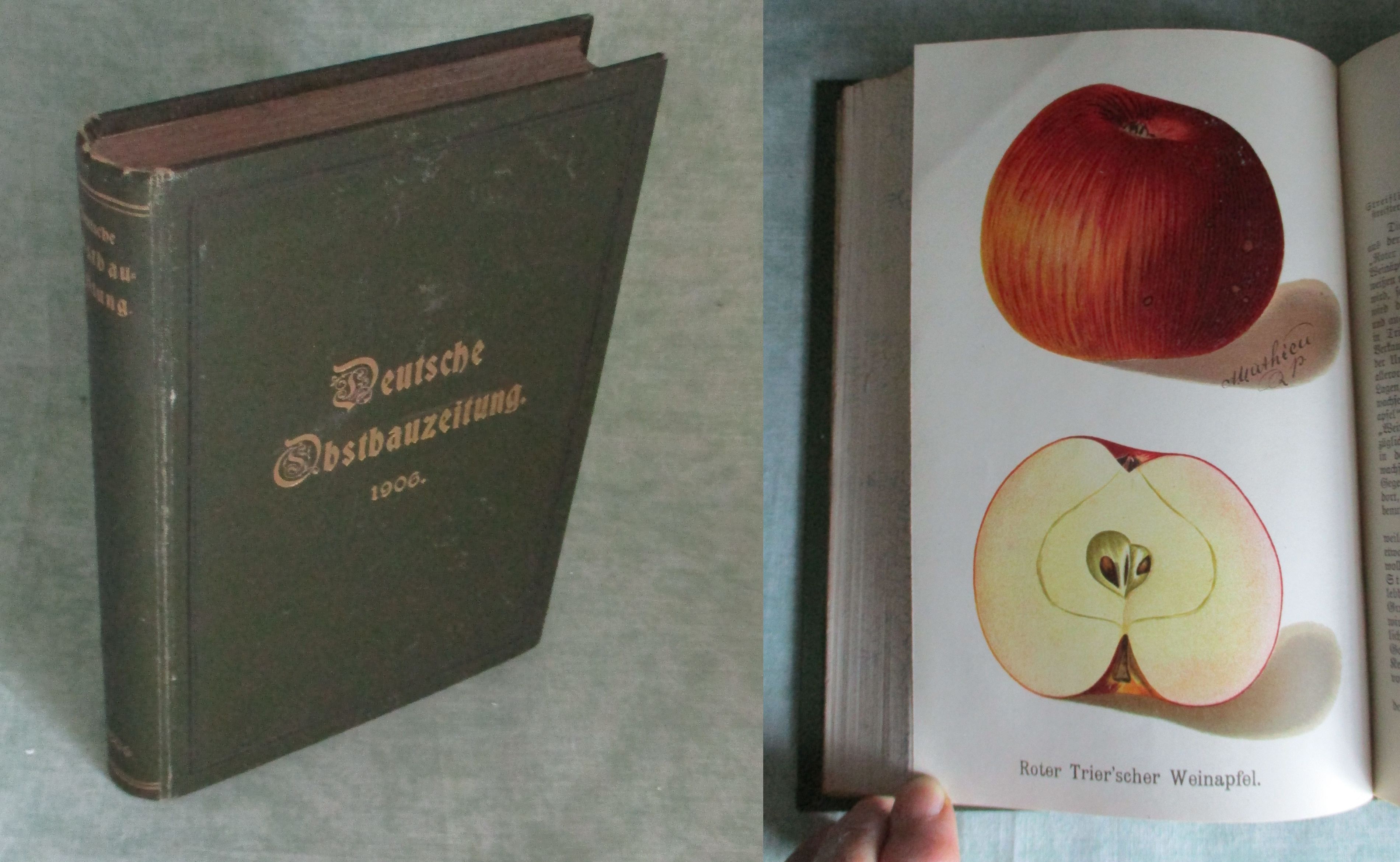 Obstbau – Pomologie Deutsche Obstbauzeitung. Jahrgang 1906. (52. Jahrgang der Pomologischen Monatshefte). Hrsg. im Auftrag des Deutschen Pomologenvereines von… Friedrich Lucas. Stuttgart, Ulmer. X. 400 Seiten, 6 farbige (chromlithogr.) 6 s/w Tafeln. Textabb. Originalleinen mit goldgepr. Titel und marmoriertem Schnitt. Ecken und Kanten minimal berieben, zwei kleine Flecken am rückwärtigen Buchdeckel. Insgesamt eini gutes Ex.