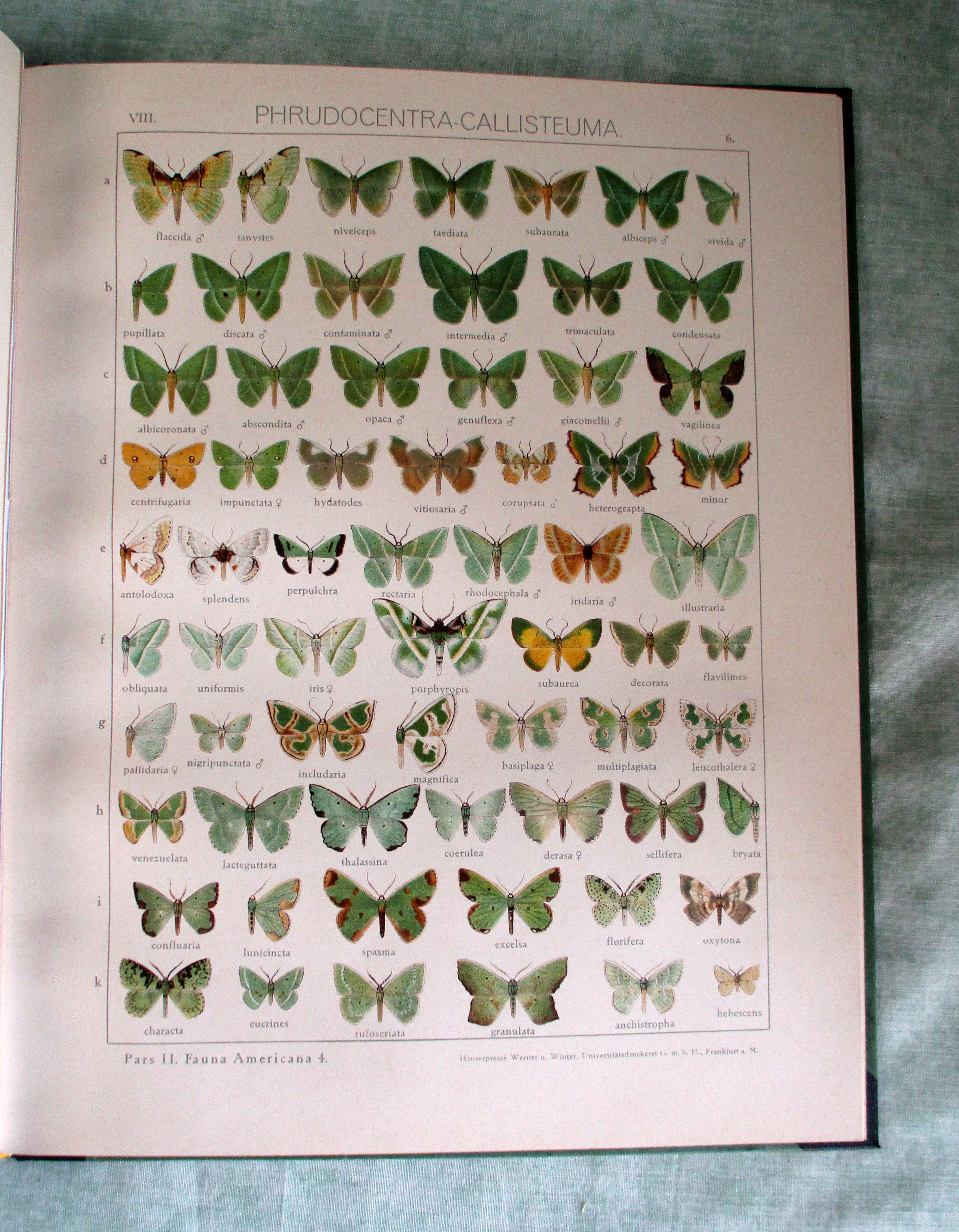 Lepidoptera – Schmetterlinge Seitz, Adalbert. Die Großschmetterlinge der Erde, 8. Band. Die amerikanischen Spanner. Nur Tafelband! Stuttgart. Lehmann. 1932. 17 Farbtafeln. Titelblatt und Tafel 14 Kopien.( Tafel 16 fehlt ?) Schlichter Halbleinenband mit goldgepr. Rückentitel in gutem Zustand. Seitz, Die Groß-Schmetterlinge der Erde. Eine systematische Bearbeitung der bis jetzt bekannten Großschmetterlinge. II. Abteilung: Exotische Fauna.