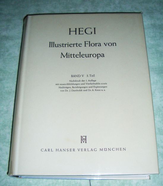 Botanik + Gartenbau Hegi, G. Illustrierte Flora von Mittel-Europa. Mit besonderer Berücksichtigung von Deutschland, Österreich und der Schweiz. 5.Band. 3. Teil. Dicotyledones (III. Teil). Pirolaceae – Verbenaceae. Nachdruck der 1. Auflage mit neuen Abbildungen und Vierfarbtafeln sowie Nachträgen, Berichtigungen und Ergänzungen.. Hanser. München. 4°. 674 Seiten, 573 Textabb., 18 farbigen Tafeln. Leinen mit Schutzumschlag. Innendeckel und Vorsatzblätter mit Klebebandspuren, ansonsten sehr gutes Ex. Beim Neudruck wurden die Abb. (Tafeln + Textabb.) überarbeitet und ergänzt. Ein Großteil der alten Pflanzenbilder wurden durch wesentlich bessere Aufnahmen ersetzt. Der Text der ersten Auflage wurde beibehalten, Korrekturen und Änderungen wurden in einem besonderen Anhang aufgenommen.