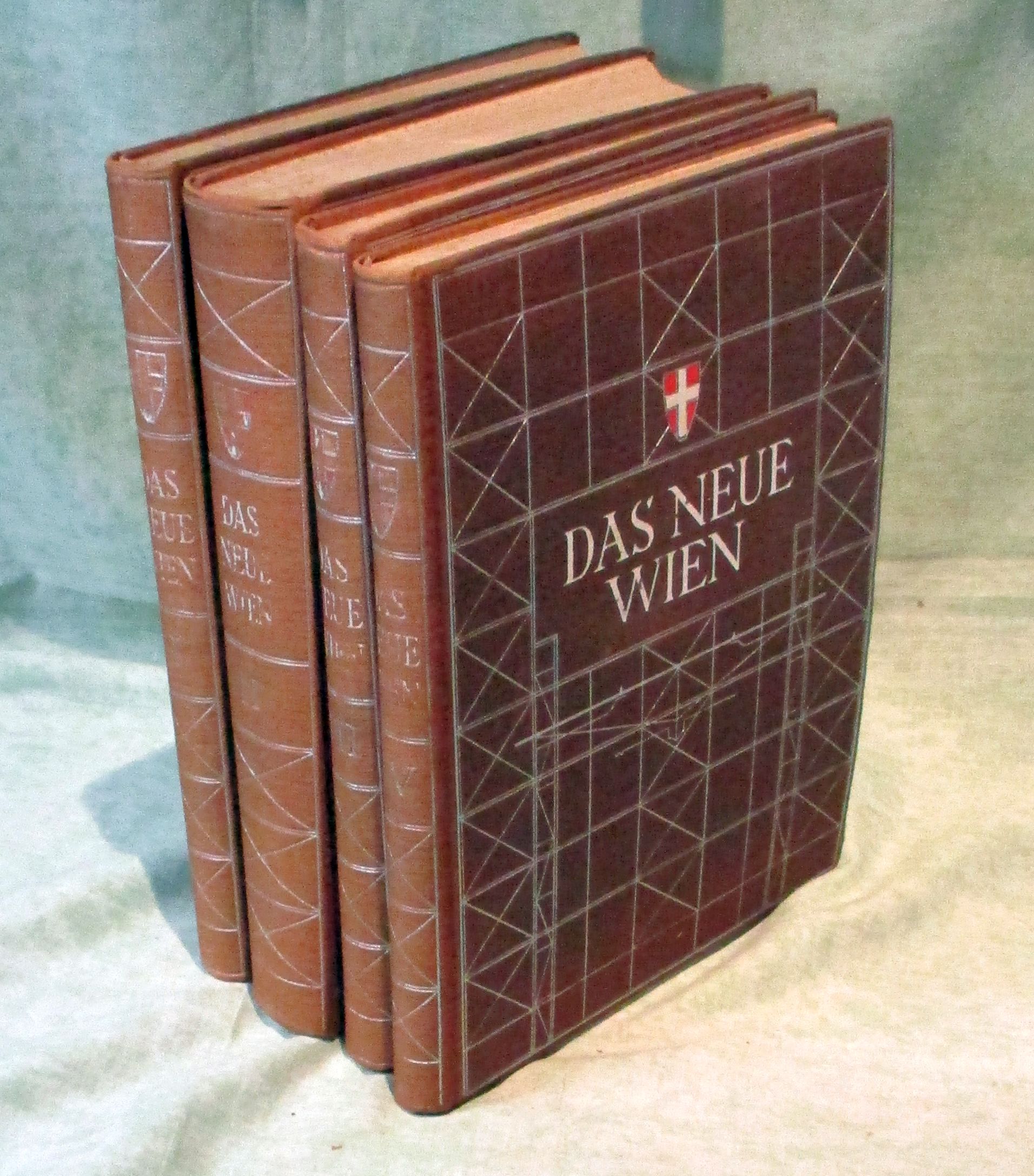 Wien – Landeskunde Das neue Wien. Städtewerk. Hrsg. unter offizieller Mitwirkung der Gemeinde Wien. 4 Bände. Wien. „Das neue Wien“. 1926. 404.895.448.415 Seiten. Durchgehend illustriert. Silbergepr. Leinenbände. Kopfschnitt leicht fleckig, ansonsten in sehr gutem Zustand! Umfangreiche Dokumentation des neuen sozialdemokratischen Wien.
