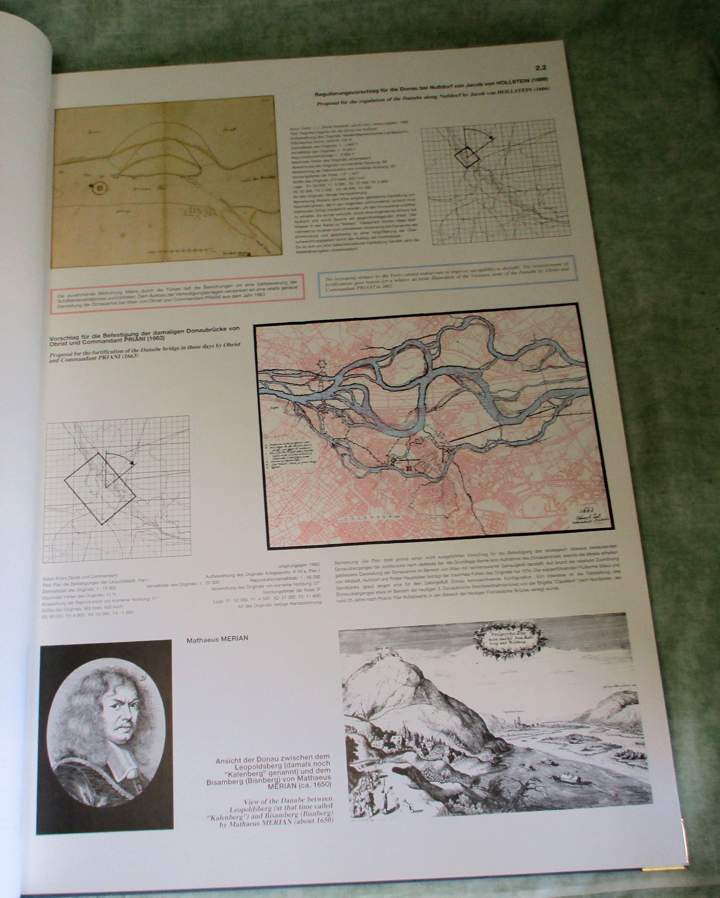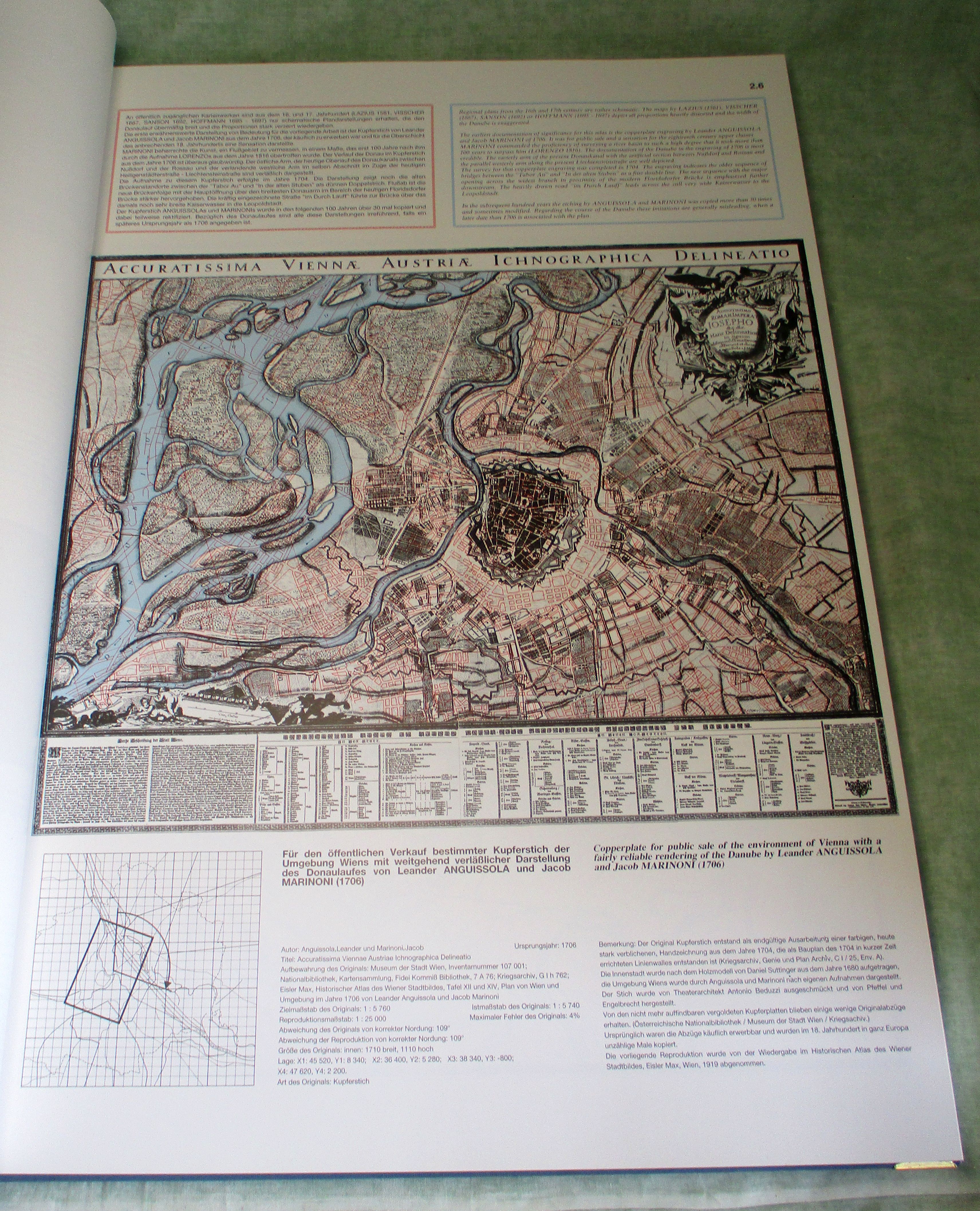 Wien – Landeskunde Mohilla, Peter / Michlmayr, Franz. Donauatlas Wien. Geschichte der Donauregulierung auf Karten und Plänen aus vier Jahrhunderten = Atlas of the Danube River Vienna.A History of River Training on Maps and Plans of four centuries. Wien, Österreichischer Kunst- und Kulturverlag. 1996. 45,5 x 61 cm. Leinen. Ecken mit Messing beschlagen. In sehr gutem Zustand. Äußerst umfangreiches und voluminöses Sammelwerk historischer Karten über die Donau bei Wien. Gewicht ca. 8 kg!